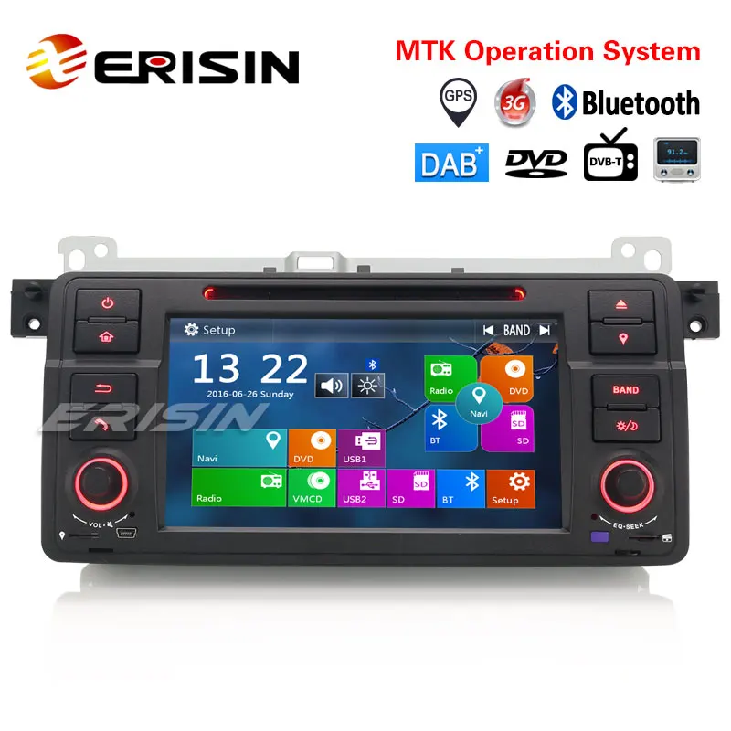 ES7162B 7" MTK Car Multimedia Player GPS 8GB CardDAB+Canbus 3G SD USB DVR DTV-IN Bluetooth... This unit will fit the following car model: for BMW 3 Series E46 1998-2001 with Old 17-Pin connector for BMW 3 Series E46 2002-2006 with new 40-Pin connector for BMW M3 1998-2006 and for BMW E46 3er 318 320 325 Rover 75 1999~2004 and MG ZT 2001~2004 Note: This unit has front panel size248mm(Top width)*118mm(High)*246mm(Bottom width), please check your dashboard size and make sure your car dashboard is same as the dashboard photo in our listing before bidding. If you want to buy theOptional Functions, you can add to cart via the link below directly For moreOptional ItemsPlsclick this link:All Optional functions and Items KEY FEATURES: New Technology + All in One + Competitive Price + High quality This is the new All-in-One Design for BMW 3er E46 with CanBus Decoder, built-inDAB+ System, just connect with our DAB+ Box to use this function. MTK3360 800MHz CPU, 256MB RAM, support 1080P RMVB Video, support the newest 10-Band EQ, support 3G WCDMA Internet, VMCD---Virtual 10 CD Changer, Bluetooth PB-Download and PB-Search, Steering Wheel Control, built-in 6 Games, Calculator, 10 internal wallpapers and can update user's wallpaper, 7 Button Light Colors, external Microphone incl., show and play iPhone6/7/8/iPad playlists, Car Recorder and DVB-T/ATSC Box input + power supply + Touch control -7 Inchsuper wide Screen, our unique design, the most BMW 3er car dvd player just has 6.2" screen size -Digital Screen(800*RGB*480), High sensitiveTouch Screen - Beautiful and fashionable UI Design, supportSlide-MenuandChange-Icon-Position - The newest MTK3360800MHzCPU, Dual Core,256MBRAM, support external memory up to 32GB -10 Wallpapersfor your Choice, you can update your photos and setting it as wallpaper -4 x 50wSurround Stereo,SubwooferOutput, support the newest10-Band EQ -Multi Menu Languages:English/Chinese/Russian/Turkish/French/German/Italian/Spanish/Portuguese/ Hebrew/Arabic/Polish/Thai -7 button light colors:Red/Green/Blue/Yellow/Magenta/Cyan/White - One button forblank screen, you can shut off Display but keep Sound in the evening - Built-in Clock and Calendar, Clock/Date/Week/Time Zone adjustable, can useGPS Time - Support3GInternet, you can connect a 3G dongle (WCDMA) to use this function - Built-in6 gamesand calculator for your travel use - SupportVirtual 10 Discs, you can save max. 10 CD in your USB/SD to play - SupportGPSnavigation, free8GB TF Cardand GPS Antenna included. -Dual zonefunction, Rear Passengers can watch DVD or TV while driver can use GPS - Support Bluetoothhands-freefunction, built-in microphone on front panel and external microphone Jack on the back. - SupportA2DP Bluetooth, can play stereo music through Bluetooth from your Phone -Download phone bookfunction, you can download contact information from your phone to this unit - Support the newestPhone Book Search, you can search&find a contact member in downloaded phone book, just input the first letter of name, you will find some associated names, then you can choose the right one -RadioTuner withRDS, 30 Preset Radio Stations (FM: 3*6, AM: 2*6) -USB1/USB2Port andSDSlot, Support USB Stick and SD Card up to 32GB, support1080P RMVBVideos, -4 in 1 Media USB Port, you can connect USB Stick, iPhone6/7/8 Device, DAB+ Box and 3G Dongle to Media Port to use corresponding function. the USB Port marked "License" is special for iPhone/iPod Audio Decoder - SupportiPhone6/7/8/ipadAudio Input, Charge and Touch Control, you can buy the iPod Audio Decoder ES150 to make it work - SupportCar DVRinput, Touch Control and Power supply - Built-inDAB+System, just connect a DAB/DAB+ Box via USB Port to use this function. - SupportDigital TVBox input, Touch Control and Power supply - SupportRear View Camerainput and reverse trigger Control - SupportSteering Wheel Control, Hand Brake Control - Electronic Anti-Shock, Last Position Memory General - Power Supply: DC 12V (allowance range: 10.8-14.5V) - Max. Current: 10A - Button Light Colors: Red/Green/Blue/Yellow/Magenta/Cyan/White - FrontpanelSize:248mm(Top width)*118mm(High)*246mm(Bottom width) - Package Size:330mm*260mm*180mm - Gross Weight:4.0kg - Net Weight:3.1kg Display - Screen Type:7 inch Touch Screen - Resolution:800*RGB*480 - Built-in Clock and Calendar:Yes - Built-in Games: Yes, 6 Games for your choice - Built-in Calculator: Yes - Screensaver: Yes, you can setting screensaver to 15s/30s/60s - Wallpapers: 10, and you can update user's wallpaper from GPS Card - Drag and drop Icons: Yes, the position of icons can be changed at will - Change the backlight: Yes, you can choose day/night backlight and adjust - One Button for Blank Screen: Yes, shut off display but keep sound in the evening - Digital or Analog: Digital Touchscreen, very vivid Setup - Beep: On/Off - Menu Languages: English/Chinese/Russian/Turkish/French/German/Italian/Spanish/Portuguese/ Hebrew/Arabic/Polish/Thai - Bluetooth: Auto Answer: On/Off, Auto Connect: Yes/No - Navigation: Volume mixed/Auto to Navi when power on... - EQ Setup: Support the newest 10-Band EQ - Sound: User/Flat/Pop/Rock/Jazz/Class - Video: Yes - Steering Wheel Control : Yes - RDS: Yes - Date & Time: Clock/Date/Week/Time Zone adjustable or GPS Time - Factory Setup: Yes, the code is 8888 3G - Connector:On the Back - 3G Standard: WCDMA only - 3G Dongle included: No, you can contact us to buy it together - Explorer: Opera GPS - Processor: MTK3360 800MHz - Operation System: Microsoft Windows CE.NET 6.0 - Internal Memory: 256MB - External Memory Size: Can expand to 32GB - Support Maps: IGO, SYGIC, GARMIN... - GPS Operation Languages: English/German/French/Spanish/Portuguese/Italian/Dutch/Finnish/Greek... - Voice Guidance: Yes - Support 2D/3D Map Views: Yes - Dual Zone: Yes, navigating while music playing - 8GB TF Card included: Yes DVD - Decode IC: SUNPLUS 8202VGQ - Compatible Format: DVD, DVD-R/RW, HDVD, MP3, MP4, CD-R/RW, VCD, DIVX, WMA/JPEG - Audio/Subtitle Languages: English/I