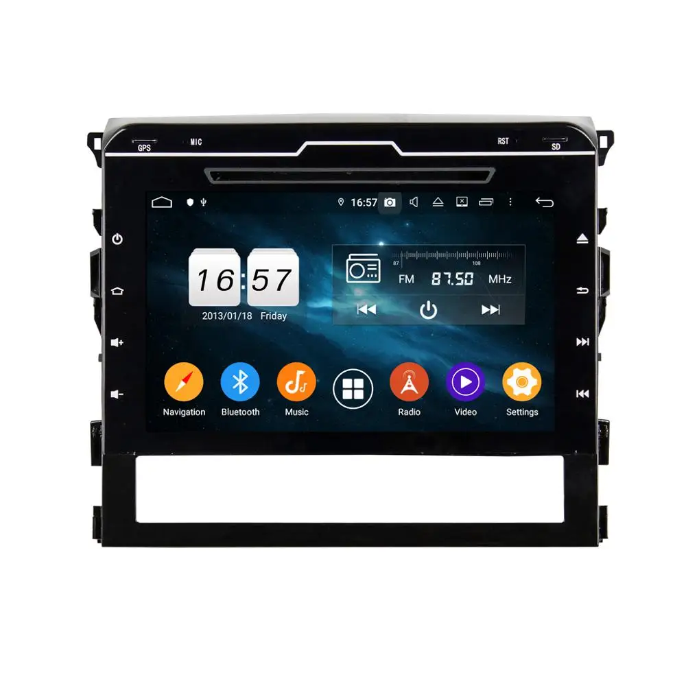 10.1 inch 4+32G Android 9.0 car multimedia Player for TOYOTA Land Cruiser 2016 with GPS Wifi NO DVD >>Main Description* Screen Pixel:1024*600* OS: Android 9.0 system* CPU: Rockchip PX5 Cortex A53,8 Core * Main Frenqency:1.5GHz* RAM:SAMSUNG 4GB DDR3 * Nand Flash:32GB* Capacitive multi-touch screen * GPS+Radio+AUX IN+DVR+Easy Connect * BT 4.2(internet connection by BT,3 ways call)* AHD rear view camera input >>System and Hardware Parameters* OS-------------Android 9.0 System* CPU------------Rockchip PX5 ,Cortex A53,Octa Core* Main Frenqency------------1.5GHz* RAM------------SAMSUNG DDR3,4GB* Flansh---------32GB* DSP------------BU32107* Radio----------NXP 6686* Bluetooth------BT4.2 (RD210)internet connection by BT,3 ways call,Phone power and signal display* Parrot Blutooth------FC6000T* Touch Screen---------Capacitive and multi-touch screen* LCD Screen-----------Hanstar Screen* Amplifer IC----------TDA 7851* Power supply---------4*50W* GPS------------------JUMPSTAR JS-U710* WIFI-----------------BL-8188-EU1* Easy Connect---------Support* TFT drive IC-----------Rockchip PX5* Loader-----------------SHINNY SD-28EF-PJJ-53X* Pick up----------------EP-HD860XCF* Video Decoder----------SUNPLUS 8202VGQ* Motor drive IC---------AMTEK-AM5888S* EQ IC------------------ROM BD37033FV-ME2* Audio IC---------------ROM BD37033FV-ME2* MCU IC-----------------STM8S207R8* Power IC---------------RT7291A* Working Temperature---- -20℃-+80℃* Rear view--------------AHD rear view camera input >>GPS Parameters* Operation system-----Android 9.0 System* Support Map----------Android 9.0 Map* Main Frenqency-------1.5GHz* Map Solution----------800*480/1024*600* Picture Format----JPG/BMP/JEPG/GIF/PNG >>Radio Parameters* Frenqency Range------FM:76.0MHz-108.0MHz* Frenqency Range------AM: 522KHz-1620KHz* Country:Europe,Russia,USA1,USA2,Japan >>Optional(extra charge)* OBD* TMPS* DAB box* DVR camera* Rear view camera* CarPlay+Android Auto